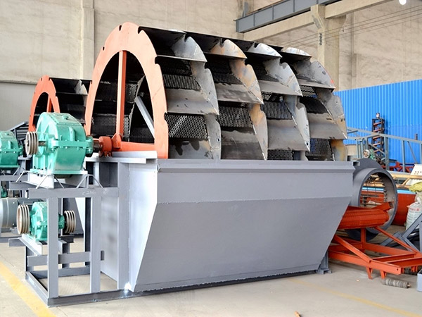 在輪斗洗砂機的工作過程中,砂石的翻滾和研磨主要依靠輪斗的旋轉(zhuǎn)來實現(xiàn)。具體來說,當砂石通過給料設(shè)備進入洗砂機的洗槽內(nèi)后,輪斗開始旋轉(zhuǎn)。